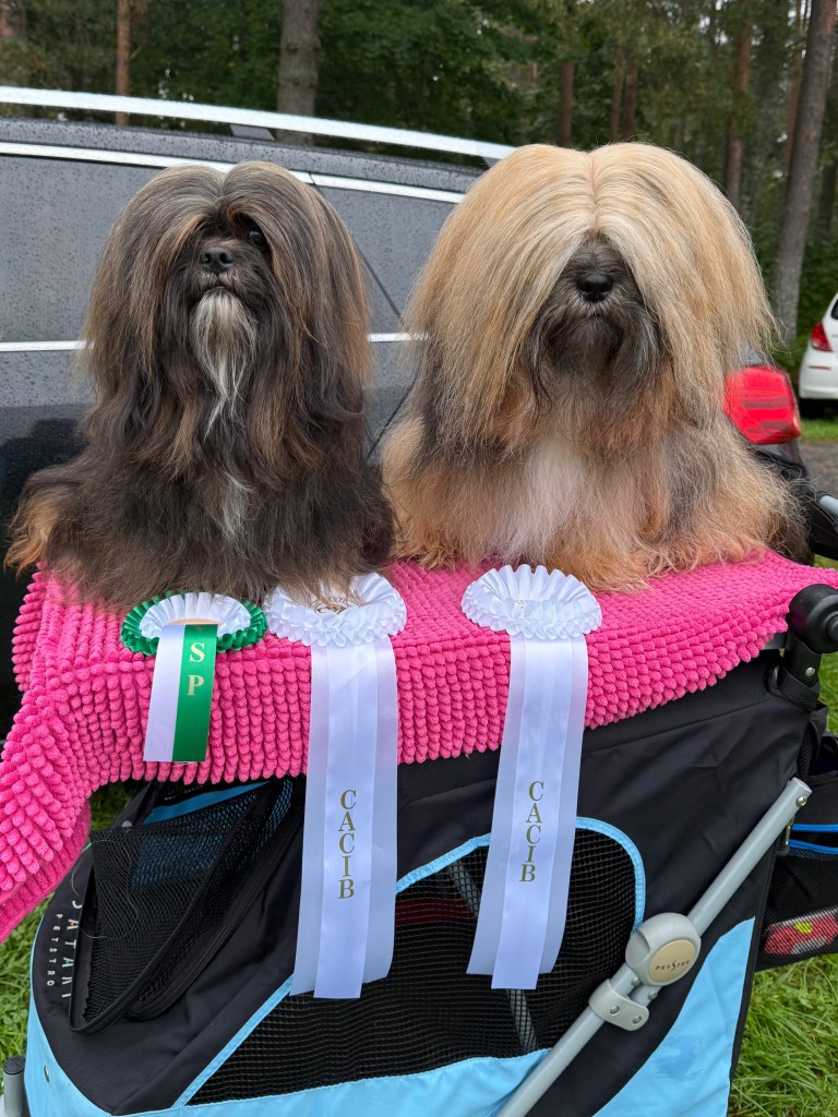 Viime sunnuntaina käväistiin Danielin ja Pihlan kanssa hyvin sateisessa Tallinnassa Luigessa kansainvälisessä koiranäyttelyssä. Apsot arvosteli ranskalainen Sylvie Desserne, joka antoi molemmille ihan kivat arvostelut. Daniel oli uroksissa PU2 ja sai Cacibin, Pihla taas ainoana nartuissa PN1, Cacib ja VSP. Ei siis mikään turha reissu tämäkään. Kotimatkalla kelikin suosi jo, joten istuskeltiin koko matka kannella ihastellen maisemia.