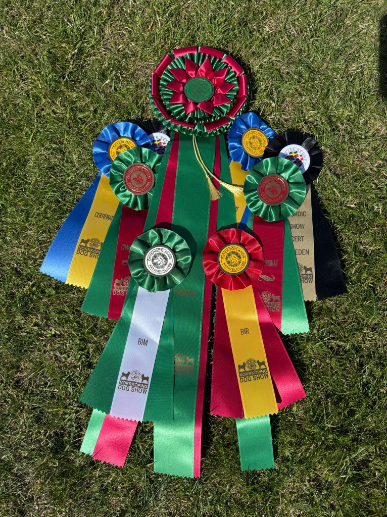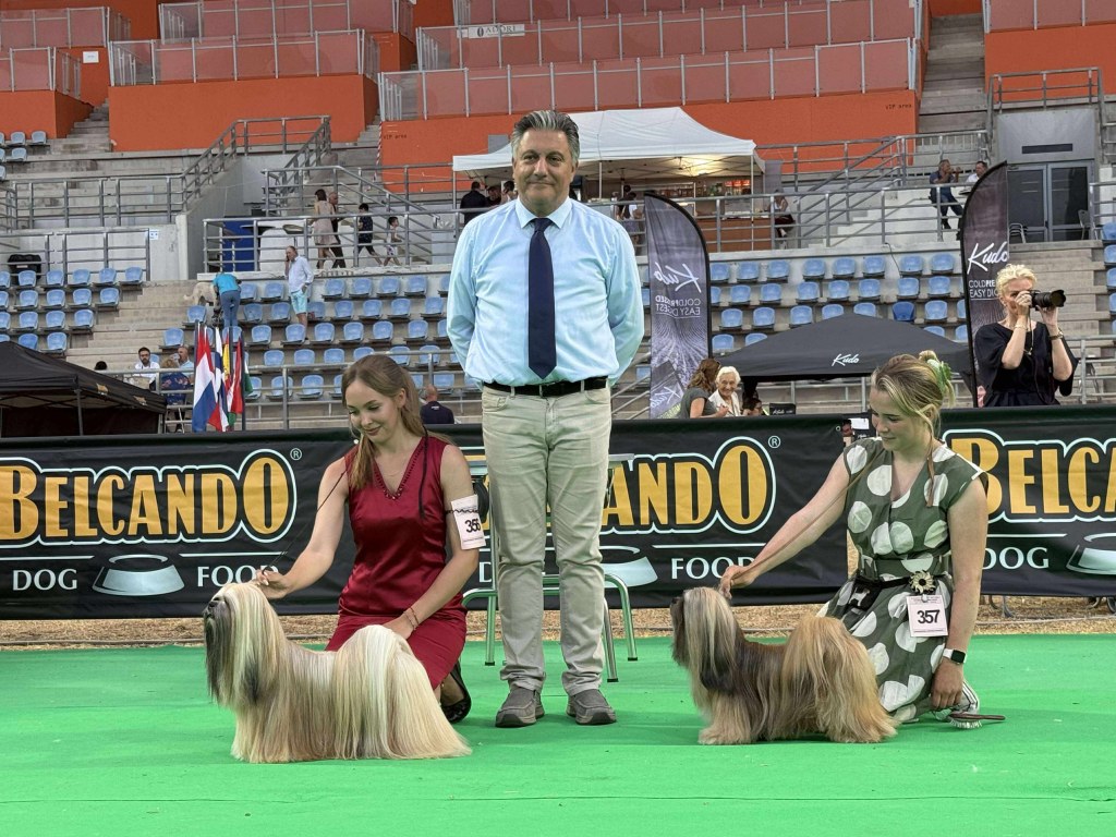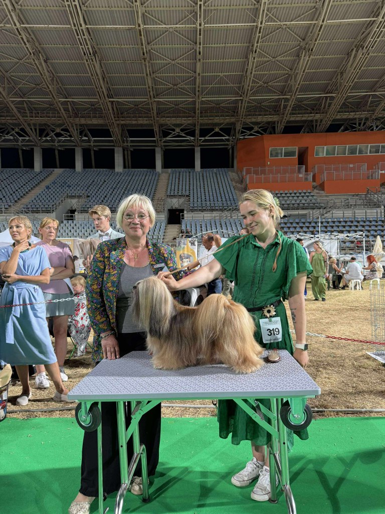 Kesäkuun alussa kävimme reissussa Liettuassa, mukana olivat Dawa, Ellen, Daniel ja Kaspian. Yksin neljän koiran kanssa meinasi välillä loppua kädet, mutta yllättävän hyvin selvittiin reissusta. Daniel oli tällä kertaa mukana vain katselemassa maisemia, sillä en ehtinyt sitä pesemään ennen reissua ja reissun päällä tuntui siltä kuin pieni flunssa olisi iskenyt, joten kehässä käytiin sitten vain muiden kanssa. Dawa nappasi heti ensimmäisenä päivänä itselleen Liettuan ja samalla myös Baltian muotovalion arvon, Ellen sai molempina päivinä junnusertit ja junnuvalioitui näillä Liettuaan ja sitten Kaspian yllätti toden teolla ja oli sunnuntaina ROP. Harmitti kun ei voitu jäädä ryhmäkehiin, mutta meillä alkoi jo olla kiire laivalle.