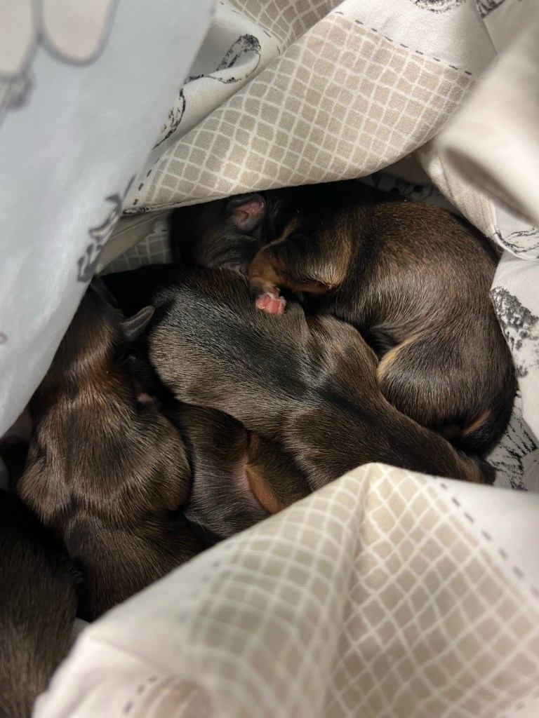 Dawan ja Chocon pennut ovat syntyneet. Toissaöinen urakka vähän verotti voimia, mutta pikkuhiljaa täälläkin alkaa olla univelat kuitattu. Saldona siis 3 poikaa ja 2 tyttöä. Kunhan ehdin niin laittelen hieman lisää kuvia heistä.