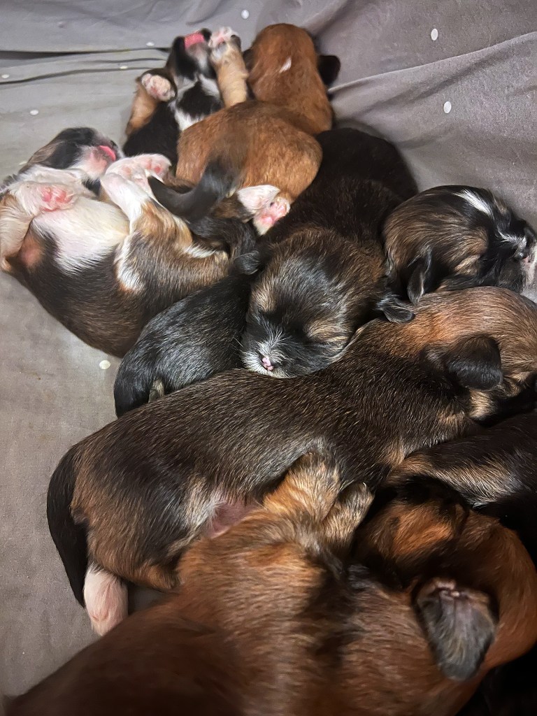 Meille syntyi eilen ystävänpäivänpentuja kun Olivia synnytti hienon joukon pikkuisia apsoja. Poikia syntyi 5 ja tyttöjä 3. Kaikki meni varsin mallikkaasti ja Olivia hoitaa pentujaan hienosti.