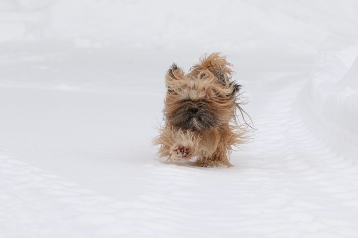 Vietimme viime viikon koirien kanssa maalla Keski-Suomessa. On ihanaa kun Suvia lukuunottamatta kaikkia voi pitää vapaana, koirat nauttivat toden teolla tästä ja lumisateesta ja pakkasesta huolimatta viettivät pihalla pitkiäkin aikoja keskenään leikkien. Kaspian oli tyytyväinen viime syksyiseen ostokseeni, Hurtta Extreme Warmer -takkiin, ei näyttänyt tulevan se päällä lainkaan kylmä. Hieman närkästystä aiheutti se, kun kielsin syömästä lunta – edes sitä valkoista. Alla olevasta kuvasta voi bongata Kaspianin mielipiteen… Otin myös joitakin kuvia Dawasta, apso osaa olla aika hauska näky pinkoessaan vähintäänkin täysiä. Loppuviikosta Dawa aloitti odotusten mukaan myös juoksunsa, joten meillä eletään nyt jännittäviä aikoja.
