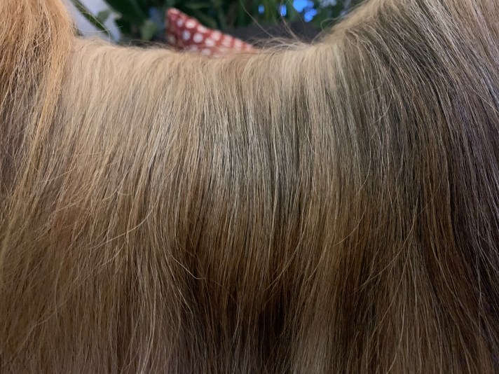 Kuivatessa huomasikin sitten eron tyttöjen turkkien välillä. Dawalle nämä Mutneysin aineet selkeästi sopivat erinomaisesti. Sen turkki oli helppo harjata läpi ja siitä tuli ihanan puhtaan tuntuinen. Lisäksi se myös pysyy hyvänä seuraavaan pesukertaan asti eikä takkuja juurikaan synny. Dawalla on ajoittain ollut myös turkin kuivuuden kanssa ongelmia, mutta näillä aineilla sekin on jäänyt.